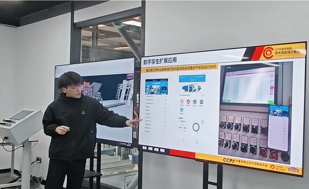 Στο χώρο κατάρτισης, οι συμμετέχοντες κέρδισαν μια διαισθητική κατανόηση ολόκληρης της διαδικασίας ψηφιακού ελέγχου για μη-καυσίμων μηχανών από τούβλα, από την ανάμιξη πρώτων υλών έως τη σκλήρυνση του τελικού προϊόντος μέσω του ψηφιακού δίδυμου συστήματος. Το σύστημα συλλέγει δεδομένα παραγωγής σε πραγματικό χρόνο, επιτρέποντας ακριβείς προβλέψεις για τη φθορά του καλουπιού, την κατάσταση του υδραυλικού συστήματος και άλλες συνθήκες λειτουργίας εξοπλισμού. Οι εκπαιδευτές παρείχαν λεπτομερείς εξηγήσεις των κύριων παραμέτρων του μηχανήματος για την παραγωγή μπλοκ και συμπλήρωσαν αυτές με πρακτικές διαδηλώσεις, επιτρέποντας στους συμμετέχοντες να κυριαρχούν γρήγορα τις βασικές δεξιότητες μέσω ενός συνδυασμού θεωρίας και πρακτικής.