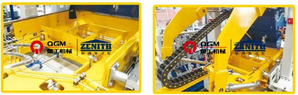 Συσκευή αλλαγής μούχλας: Εγκαταστάθηκε στο πλαίσιο του κύριου μηχανήματος, χρησιμοποιείται για την ανύψωση και τη φόρτωση των καλουπιών κατά την αλλαγή των καλουπιών, εξοπλισμένο με ηλεκτρική συσκευή ανυψωτήρα αλυσίδας και ηλεκτρική συσκευή πεζοπορίας.